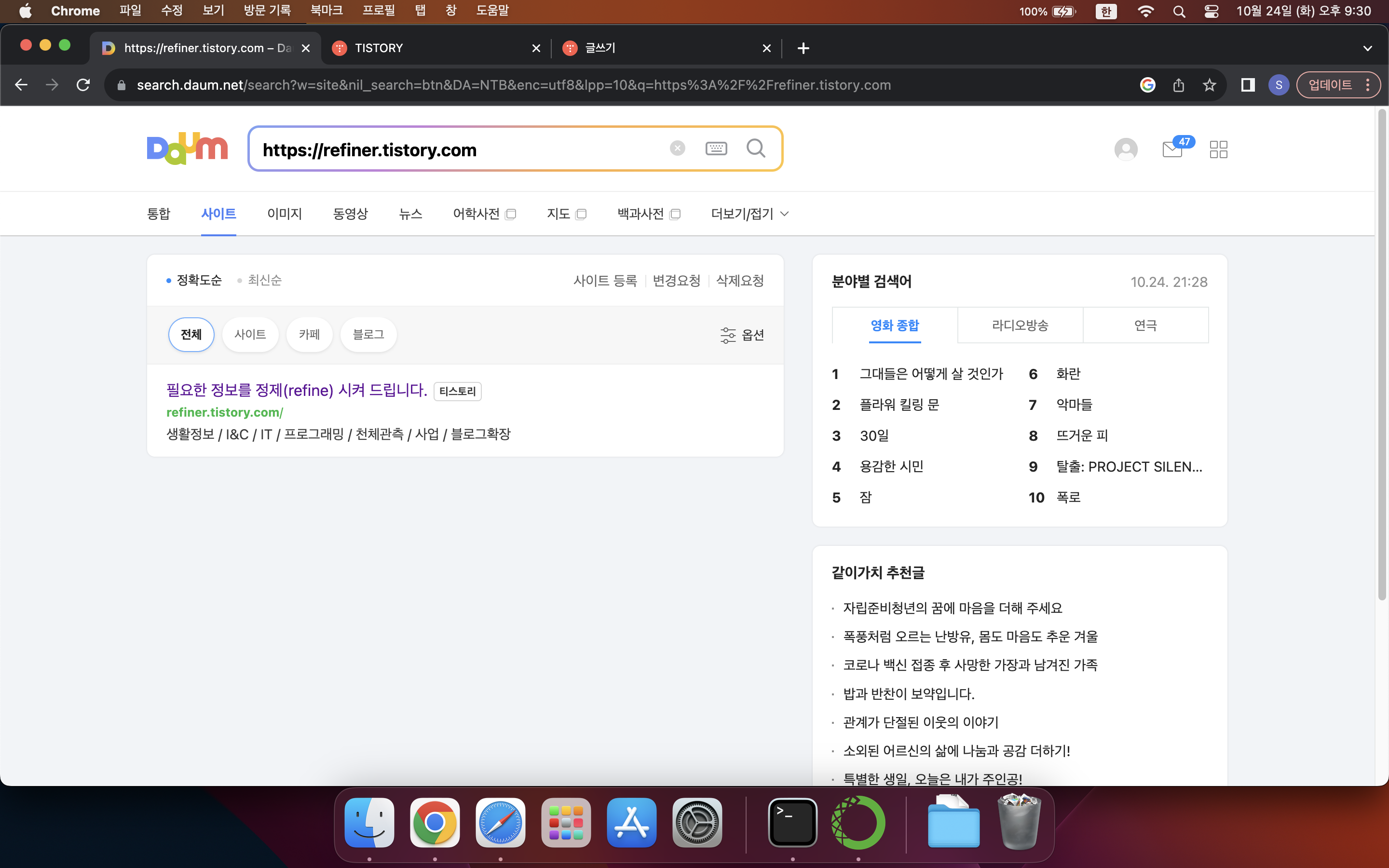 며칠 정신없이 보냈는데 티스토리가 다음에 드디어 활성화가 되었다.