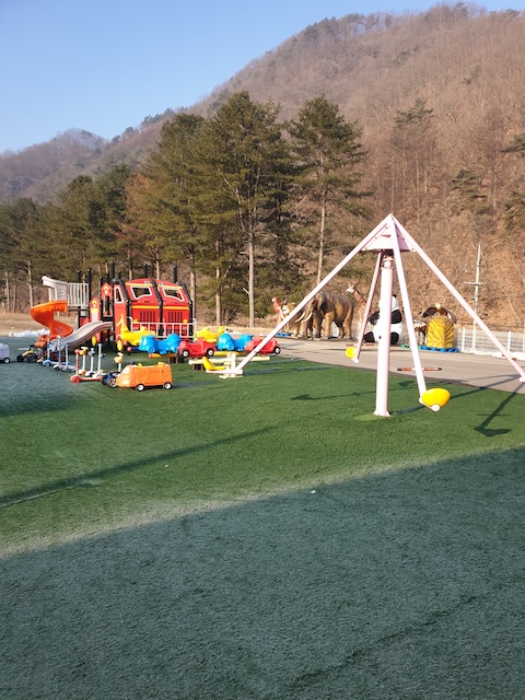 풀장 바로 맞은편은 아이들 놀 수 있는 기구들이 있었는데요.