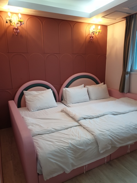 침대가 방 넓이만큼 딱 맞춰서 있는 키즈펜션도 있지만