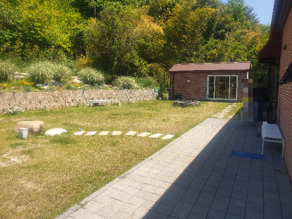 입구 앞에 예쁜 잔디마당이 있습니다.