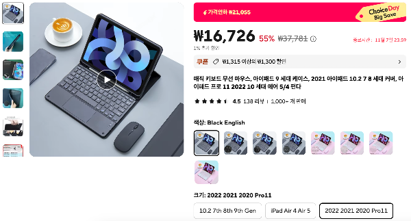 쿠팡 짭펜슬 가격 = 알리 블루투스 키보드 + 마우스 가격