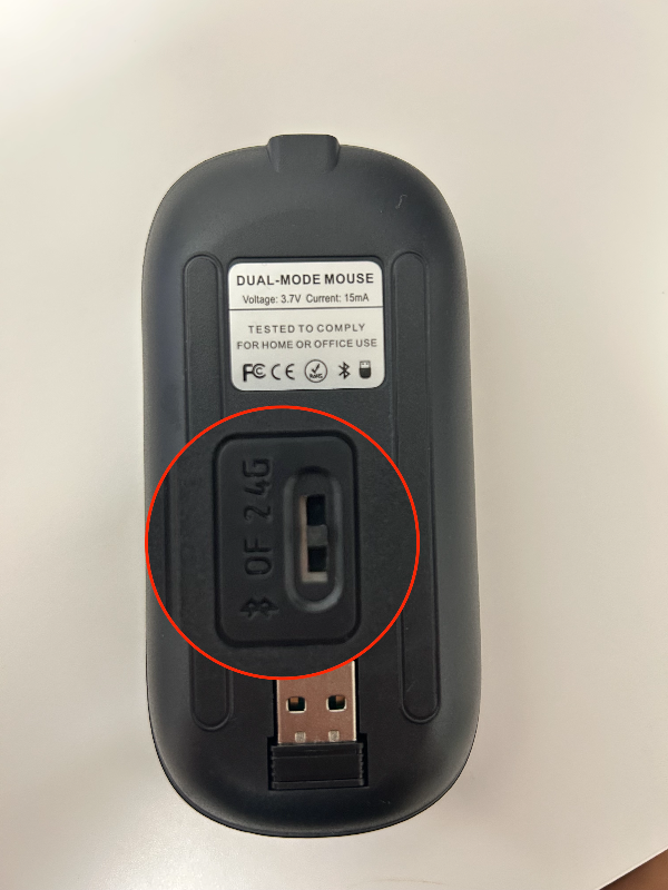 마우스 밑면에 있는 토글스위치를 블루투스 그림방향으로 아래도 내리면