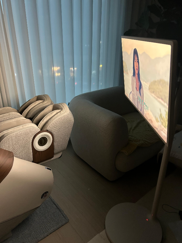 스탠바이미와 블루투스 연결하여 소리는 팔콘 SV스피커로 시청하면서 안마를 받았습니다.